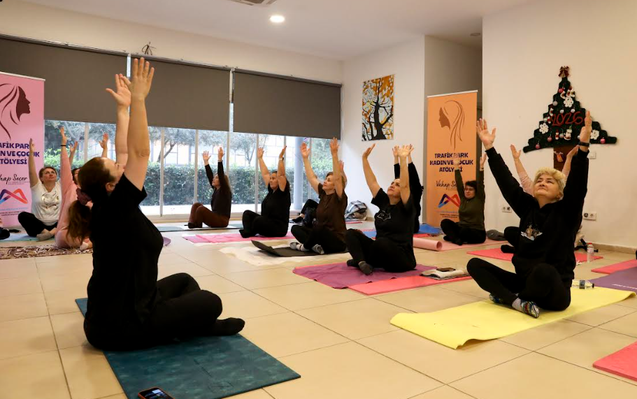 Mersin Büyükşehir Belediyesi Kadın ve Aile Hizmetleri Dairesi Başkanlığı bünyesinde yer alan Trafik Park Kadın ve Çocuk Atölyesi’nde devam eden ‘Kadınlara Özel Nefes ve Hareket Eğitimi’ ile kadınlar; doğru nefes alma tekniklerini, doğru nefes almanın beden ve zihin sağlığı üzerindeki olumlu etkilerini ve hayat enerjisinin bedene yayılmasını keşfeden bir yolculuğa çıkıyor. ‘Matını al gel, nefese ve ana odaklanıyoruz’ mottosuyla süren egzersizlere katılan onlarca kadın, çalışmalarla birlikte güne enerjik başlama fırsatı buluyor.