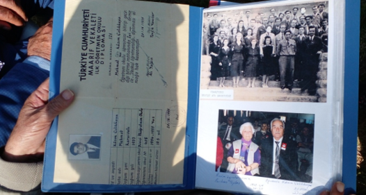 Kazım Çelikkaya: Babam eski yazıyı da yeni yazıyı da bilirdi, iyi bir okurdu ve çok güzel yazısı vardı. Babam bu tür laflara hiç önem vermezdi, aldırmadı ve beni Enstitüye yazdırmak için uğraştı. Hatta sonradan kardeşlerimi de sınava girdirdi ve onlar da kazanarak okudu. Ama benim okula kayıt sürecim iki adım atıyorsak bir adım geri gitmişti. Mahkemeyi kaçırdık mesela, müracaat edememiştik. Kimlikte yaşım küçük olduğu için diploma aldığım halde bir sene okula tekrar devam etmek zorunda kaldım. Öğretmenim beni ilkokul beşinci sınıfta tekrar okuttu. Öğretmen: "Yalnız devamlı geleceksin, geç kalmak bile yok" dedi. Müfettiş geldi bir gün öğretmenime (kayıtsız diploma aldığım için) "Bak, bir kişi fazla" dedi. Öğretmenimin talebi ile bana bir soru sordu: "Saat dokuzda, akrep ve yelkovan ucu arasındaki mesafe 5 cm iken, dairenin alanı ne kadardır?" Esasında matematiğim kuvvetli değildi. Zaten öğrencilerin %99'unun matematiği zayıf olurdu. Ben sorunun cevabını akıl yürüterek bildim. Müfettiş, öğretmene, "Demek ki bu konuyu işlemişsiniz, devam, bu çocuk okula gelsin," dedi. Benden önce mezun olan '34 doğumlu bir arkadaşımız daha vardı. O, ben ve bir kişi daha girdik sınava; arkadaşım ve ben kazandık. Karaisalı'dan o yılın sonunda 21 kişi girdi sınava, 7 kişi kazandı.