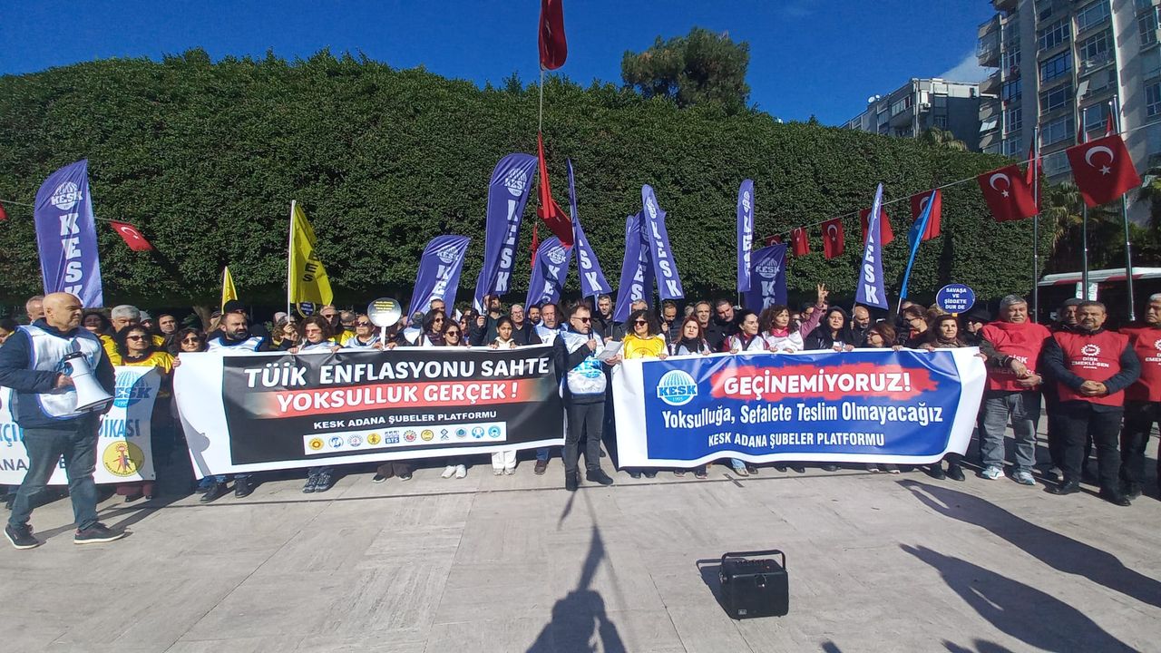 KESK Adana Şubeler Platformu üyesi sendikalar, gerçekleştirdikleri iş bırakma eylemiyle ekonomik krize, yoksulluğa ve güvencesizliğe dikkat çekti. Adana’da iş bırakan KESK’liler, Eğitim Sen Adana Şubesi önünde toplanarak Atatürk Parkına yürüdü. Yürüyüş sırasında sık sık “İnsanca Yaşamak İstiyoruz”, “Zafer Direnen Emekçinin Olacak”, “Hak Verilmez Alınır, Zafer Sokakta Kazanılır” sloganları atıldı.