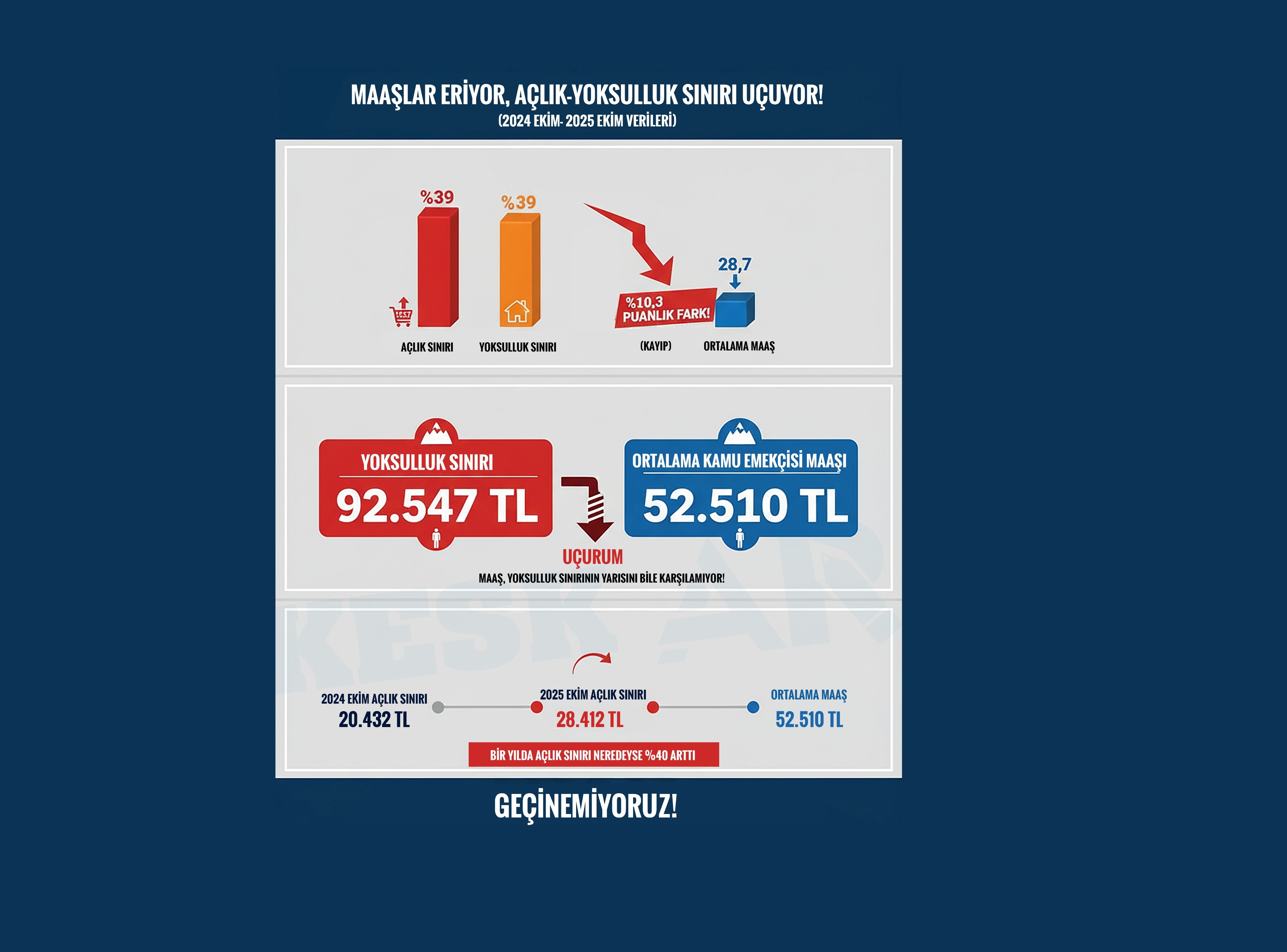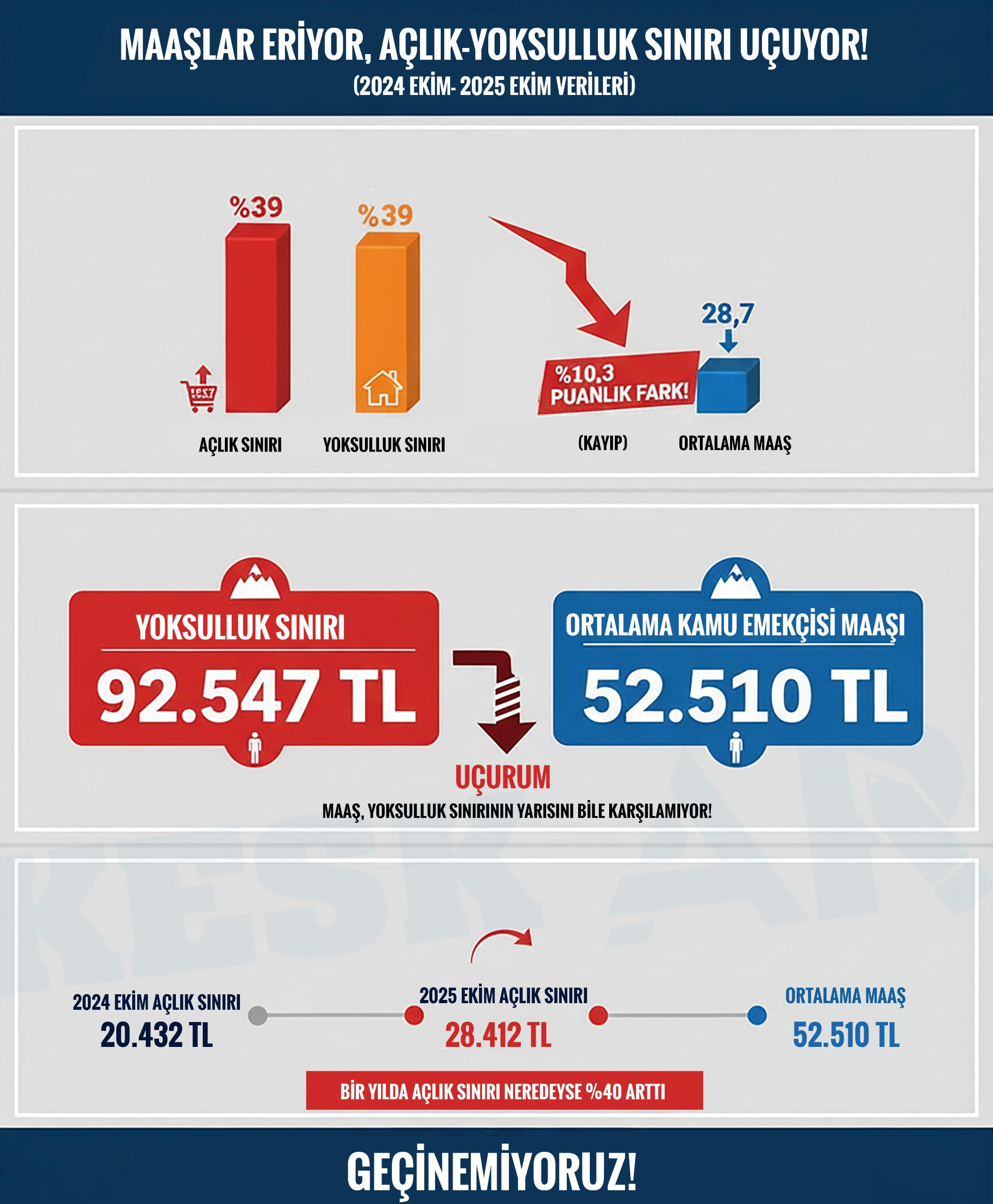 - Açlık sınırı son bir yılda %39 artarak 28.412 TL’ye çıktı.