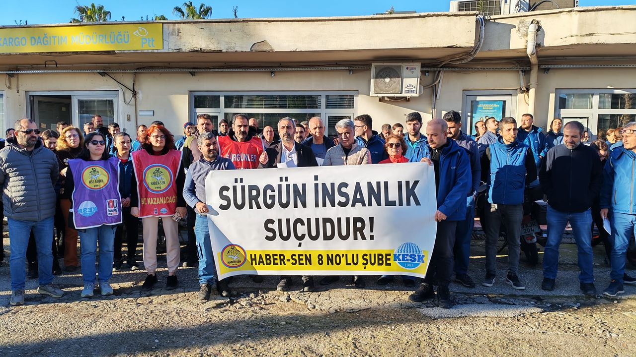 KESK’e bağlı Haber-Sen 8 No’lu Şube, PTT Genel Müdürlüğü’nün Mersin’de üç kamu emekçisini “soruşturma” gerekçesiyle başka illere göndermesine karşı basın açıklaması yaptı. Mersin Üniversitesi Yenişehir Kampüsü yanındaki Posta İşleme Merkezi önünde konuşan Şube Başkanı Musa Özdemir, uygulamanın hukuksuz ve sendikal ayrımcılık içerdiğini belirterek, “Bu bir idari tasarruf değil, açık bir cezalandırmadır” dedi.