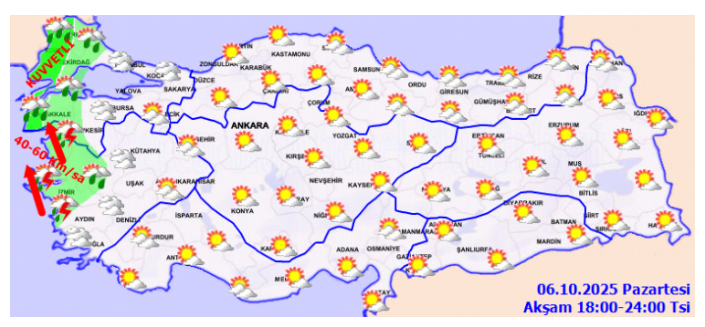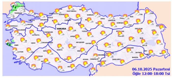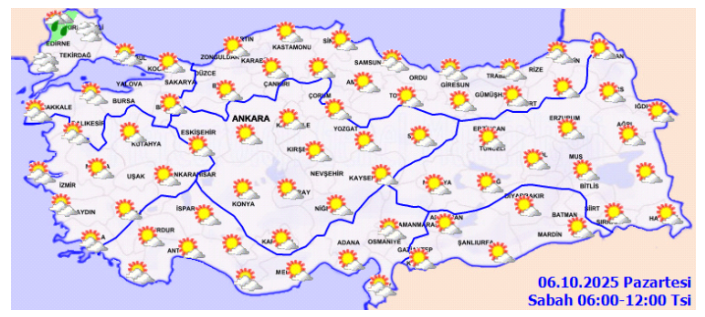 Meteoroloji Genel Müdürlüğü 6 Ekim Pazartesi gününe ilişkin hava tahmin raporunu yayımladı.