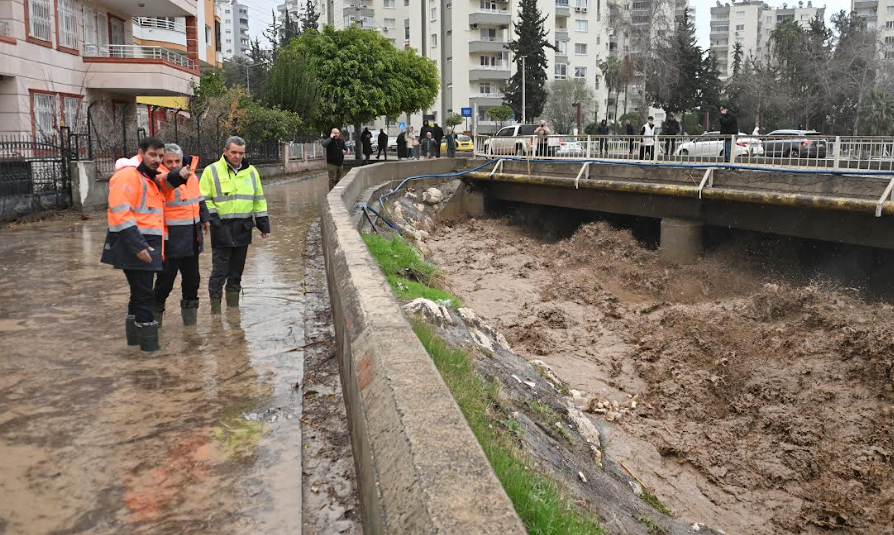 Meteoroloji Genel Müdürlüğü’nün kuvvetli yağış uyarısının ardından kent genelinde önlemler alan Mersin Büyükşehir Belediyesi ile Mersin Su ve Kanalizasyon İdaresi Genel Müdürlüğü (MESKİ) ekipleri, sabah saatlerinden başlayarak gün boyunca süren kuvvetli yağışın kentin bazı bölgelerinde yarattığı olumsuzluklar ile Mezitli Deresi’nde yaşanan sel ve taşkınlara müdahale etmeye devam ediyor.