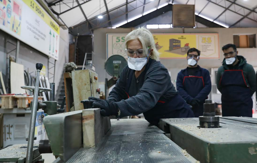 Mersin Büyükşehir Belediyesi, MERCEK Mesleki Eğitim Merkezi kapsamında verilen ‘Mobilya İmalat ve Montaj’ kursu ile vatandaşlara meslek edinme imkânı sunarken, geleceğin kadın mobilya ustalarını da yetiştiriyor. Sosyal Hizmetler Dairesi Başkanlığı bünyesinde çalışmalarını sürdüren MERCEK Mesleki Eğitim Merkezi, vatandaşlara mesleki beceriler kazandırarak nitelikli iş gücü istihdamına katkı sağlıyor. ‘Mobilya İmalat ve Montaj’ kursunun sunduğu ücretsiz eğitimlerle kursiyerler, ahşap işçiliğinin temel tekniklerini öğrenerek üretim yapıyor. Kursiyerler, uluslararası geçerliliğe sahip Mesleki Yeterlilik Belgesi ile kendi iş yerlerini açabilme fırsatı bulurken, yurt dışında çalışma olanağına da sahip olabiliyor.