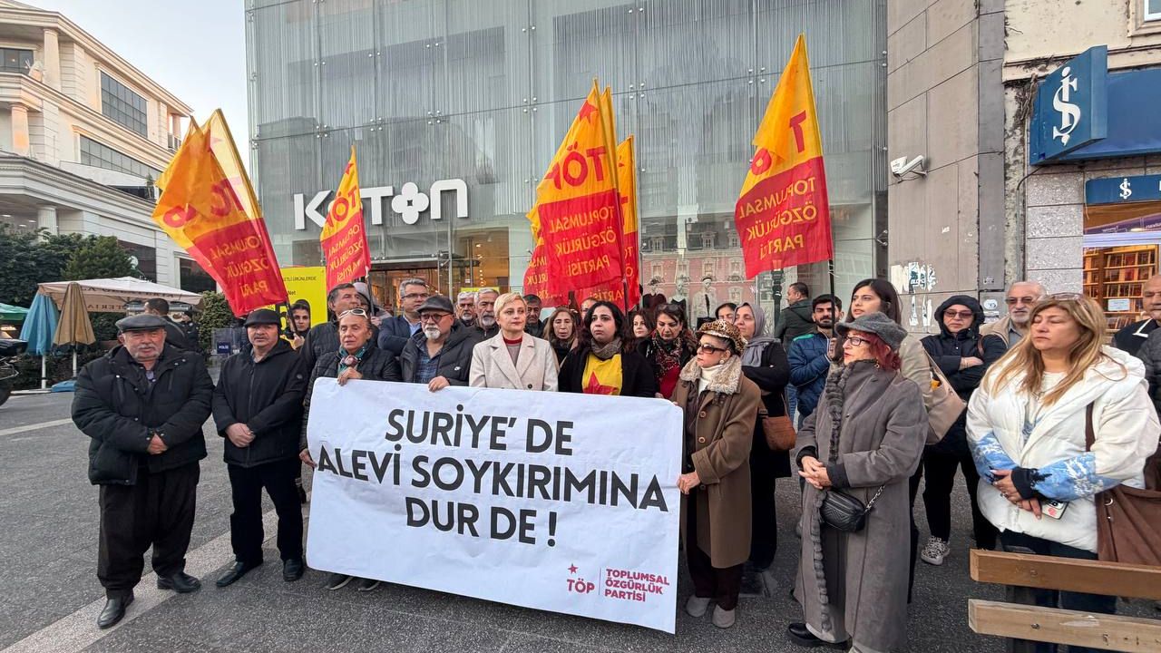 Suriye’de Alevi halkın maruz kaldığı ağır hak ihlallerine ve soykırım iddialarına dikkat çekmek amacıyla Mersin’de bir basın açıklaması gerçekleştirildi. Toplumsal Özgürlük Partisi’nin (TÖP) çağrısıyla düzenlenen eylemde, “Suriye’de Alevi Soykırımına Dur De” sloganı öne çıktı. Eyleme çok sayıda yurttaşın yanı sıra TÖP Sözcüler Kurulu Üyesi ve DEM Parti Mersin Milletvekili Perihan Koca da katıldı.