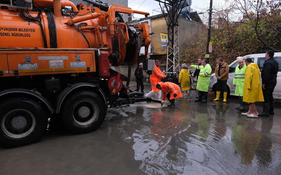 Metrekareye 72 kg yağmurun yarattığı sorunlara Büyükşehir aralıksız müdahale ediyor.