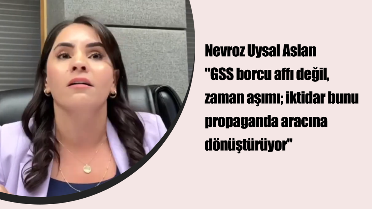 DEM Parti Şırnak Milletvekili Nevroz Uysal Aslan, 11. Yargı Paketi'nde yer alan Genel Sağlık Sigortası (GSS) borçlarının affına ilişkin düzenlemenin “gerçek bir af değil, zaman aşımının siyasi olarak paketlenmiş hali” olduğunu söyledi.