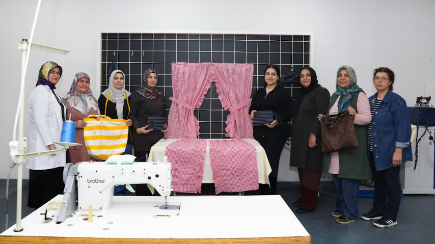 Mersin’de engelleri aşmak ve özel gereksinimli birey ve ailelerinin sosyal hayata katılımını artırmayı hedefleyen Mersin Büyükşehir Belediyesi’nin, Sağlık İşleri Dairesi Başkanlığı’na bağlı Engelsiz Yaşam Merkezi’nde sürdürdüğü ‘Dikiş Kursu’ ile özel gereksinimli bireylerin anneleri hem dayanışıyor, hem de dikiş dikmeyi öğreniyor. Kadınlar böylece bir yandan günlük hayatın stresinden uzaklaşırken, bir yandan da el emeği ile üretim yapıyor.