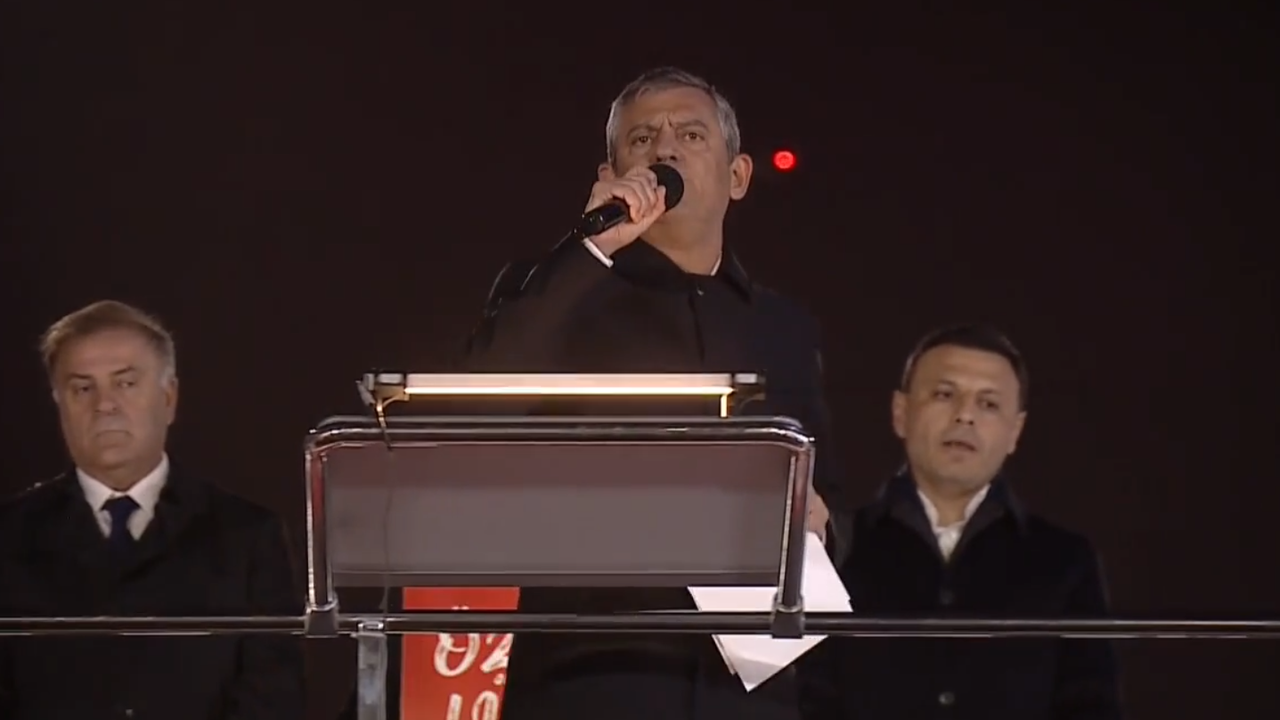 CHP Genel Başkanı Özgür Özel, İstanbul Cumhuriyet Başsavcısı Akın Gürlek’e verdiğini açıkladığı sürenin sona erdiğini belirterek kürsüye çıktı ve kalabalığa hitap etti. Özel konuşmasında hem yerel seçim sürecine hem İmamoğlu’nun tutukluluğuna hem de iddiasına göre yargıdaki siyasi müdahalelere dikkat çekti.