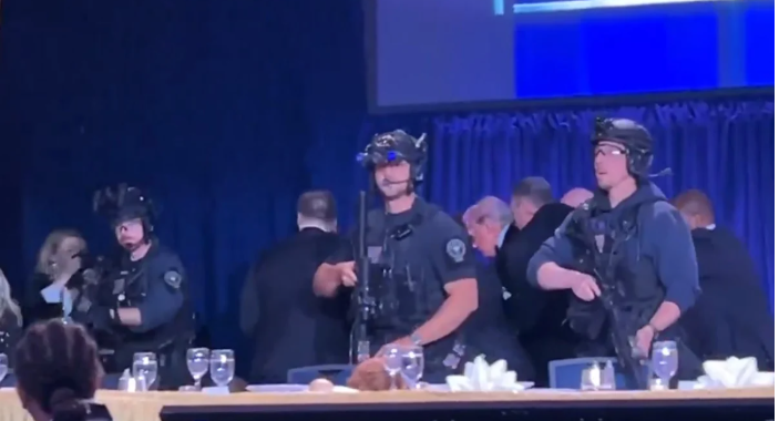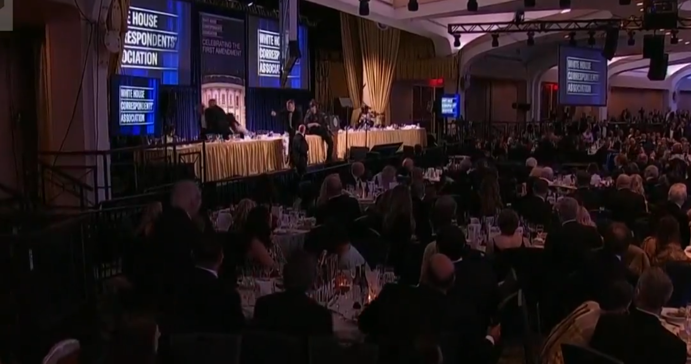 Hilton Otel’de düzenlenen ve Trump’ın başkanlığı döneminde ilk kez katıldığı etkinlikte, yemek servisinin başlamasından kısa süre sonra bağrışmalar ve silah sesleri yükseldi. Canlı yayın sırasında yaşanan olayda, koruma ekiplerinin uzun namlulu silahlarla salonda pozisyon aldığı görüldü.