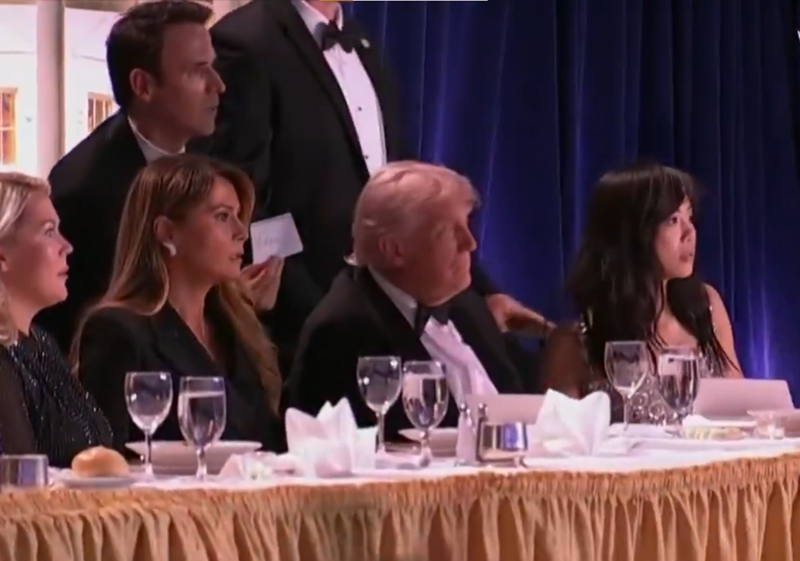 Güvenlik bariyerlerini aşarak Trump’ın bulunduğu masaya ulaşan ekipler, ABD Başkanı’nı ve eşi Melania Trump’ı koruma çemberine alarak hızla dışarı çıkardı.