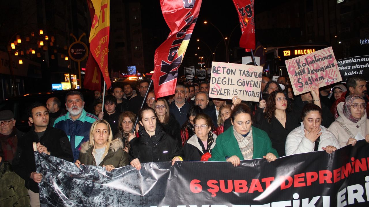 Adana’da Deprem Dayanışması, Emek ve Demokrasi Platformu ve depremzede yurttaşların çağrısıyla Aksagaz Kavşağı’ndan Duygu Kafe önüne uzanan bir yürüyüş gerçekleştirildi. Yoğun yağmur altında yapılan yürüyüşte taşınan pankart ve dövizlerle 6 Şubat depremlerinde yaşamını yitirenler anıldı; sorumluların hesap vermesi istendi. Yürüyüş boyunca “Unutmak yok, affetmek yok, helalleşmek yok”, “6 Şubat’ı unutma, unutturma” sloganları yankılandı.