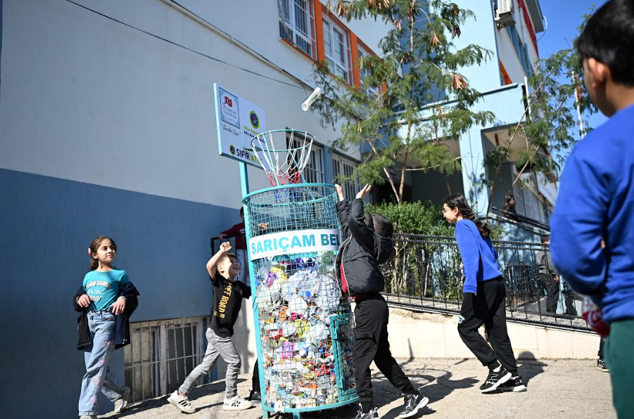 Sarıçam Belediyesi, okullarda sıfır atık bilincini güçlendirmek amacıyla hayata geçirdiği “Sıfır Atık Potaları” uygulamasıyla çevre duyarlılığını oyunla buluşturdu. İlçede bulunan okullardaki basketbol potası şeklinde tasarlanan özel geri dönüşüm üniteleri sayesinde öğrenciler; plastik şişe, kâğıt ve benzeri geri dönüştürülebilir atıkları eğlenceli bir yöntemle ayrıştırma imkânı buluyor.