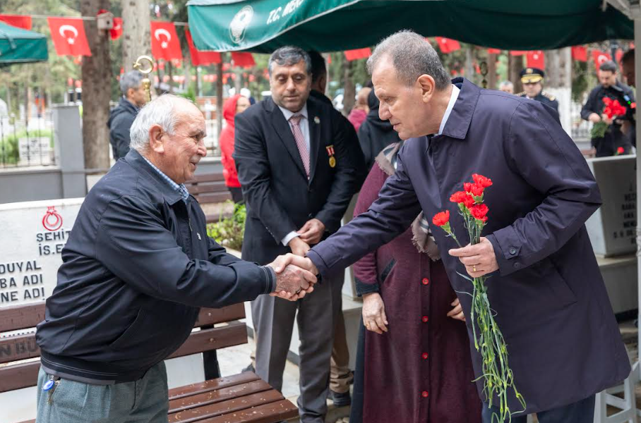 Türkiye Belediyeler Birliği (TBB) Başkan Vekili ve Mersin Büyükşehir Belediye Başkanı Vahap Seçer, Mersin Valiliği tarafından Ramazan Bayramı dolayısıyla düzenlenen program kapsamında Arife Günü’nde Mersin Şehitliği’ni ziyaret ederek, şehit aileleri ve ardından da kent protokolüyle bayramlaştı.