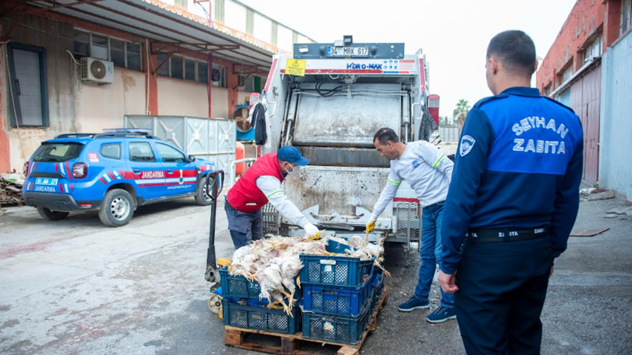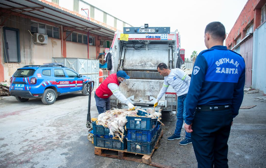 Ele geçirilen yüzlerce karkas tavuk ölüsü, halk sağlığına yönelik tehlike oluşturmaması için derhal Seyhan Belediyesi Temizlik İşleri Müdürlüğü ekiplerine teslim edildi. Temizlik İşleri ekipleri de kokmuş ve bozulmuş tavukları toplayarak, hijyen kurallarına uygun şekilde imha işlemini gerçekleştirdi.