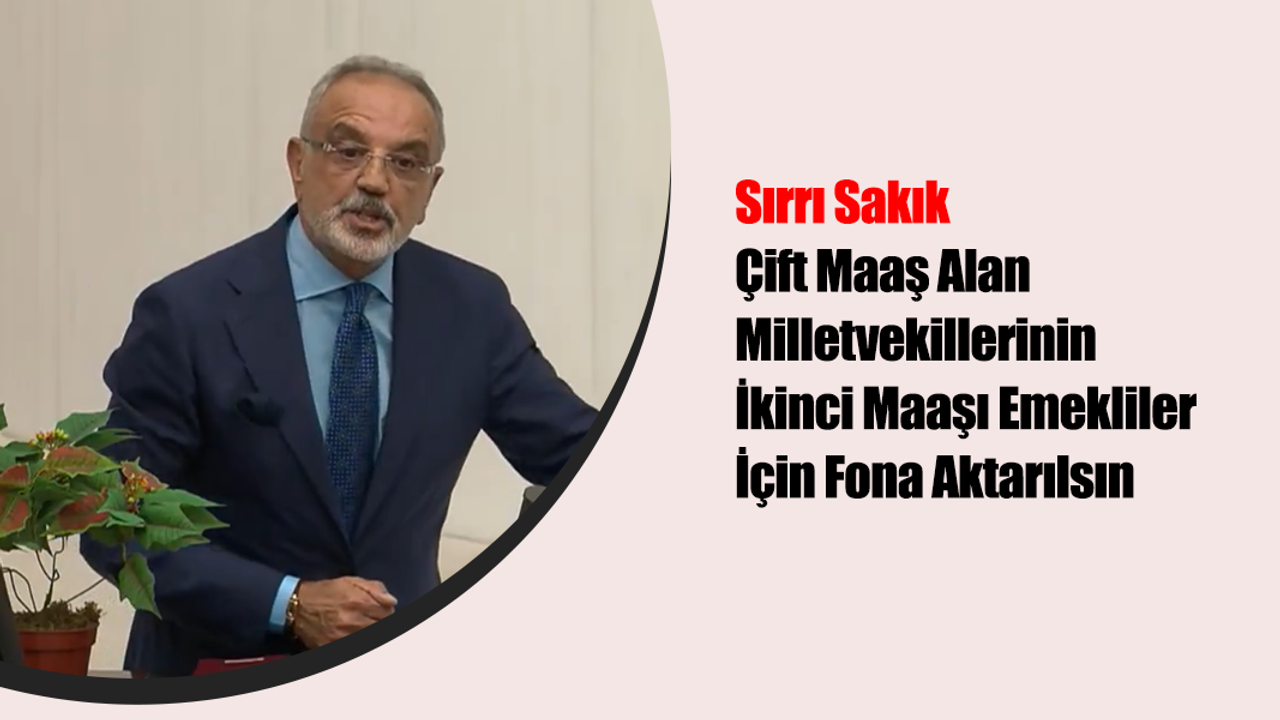 DEM Parti Ağrı Milletvekili Sırrı Sakık, Meclis’te yaptığı konuşmada israf, ayrıcalıklar ve çift maaş uygulamalarını sert sözlerle eleştirdi. Sakık, çift maaş alan 499 milletvekili (kendisi dâhil) ile Meclis başkanlarının ikinci maaşlarının emekliler için oluşturulacak bir fona aktarılmasını önerdi.