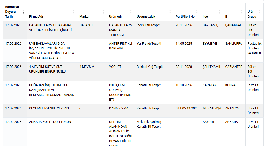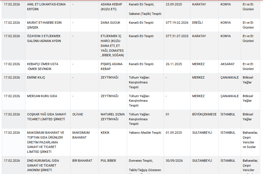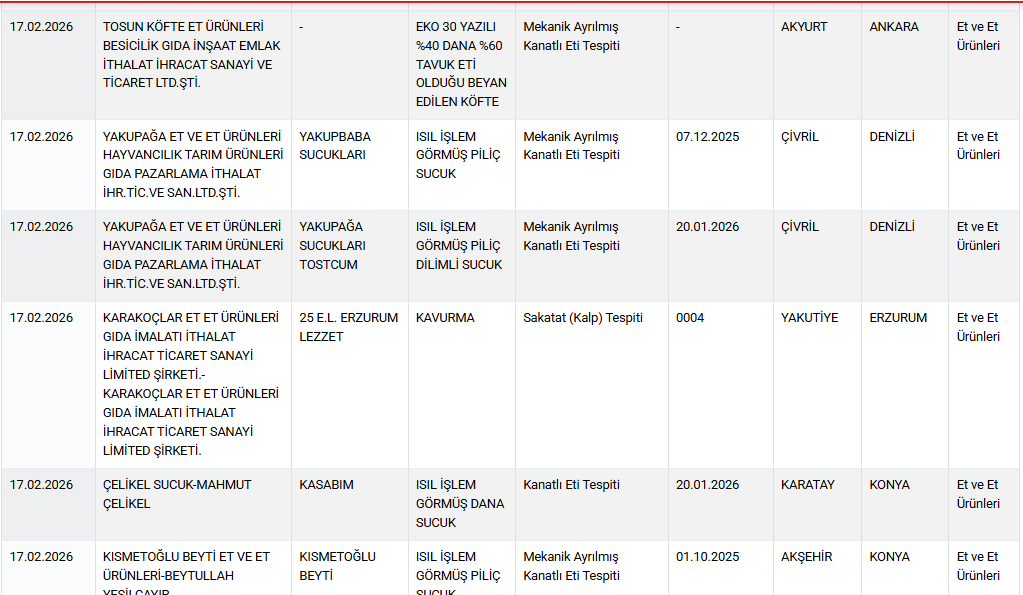 Tarım ve Orman Bakanlığı, tüketicilerin güncel listeyi düzenli olarak kontrol etmeleri için guvenilirgida.tarimorman.gov.tr adresini işaret etti.