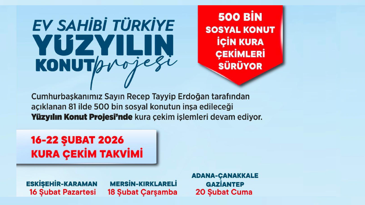 TOKİ’nin açıkladığı takvime göre 16–22 Şubat 2026 haftasında, 11 ilde toplam 98 bin 839 konut için kura çekimi yapılacak. İl il kura programı şu şekilde: