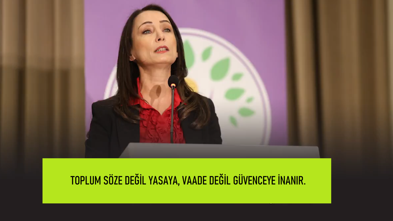 Barış yasası, kayyımların kaldırılması ve demokratik siyasetin önündeki engellerin kaldırılması gibi başlıkların artık somut talepler olduğunu ifade eden Hatimoğulları, toplumun vaatlere değil güvencelere ihtiyaç duyduğunu söyledi.