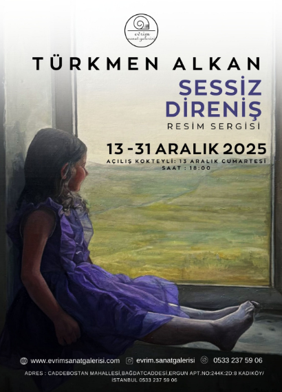 Sanatseverler, Türkmen Alkan’ın yeni dönem üretimlerini bir arada görebilecekleri “Sessiz Direniş” sergisini 31 Aralık 2025 tarihine kadar Evrim Sanat Galerisi’nin yeni adresinde ziyaret edebilirler.