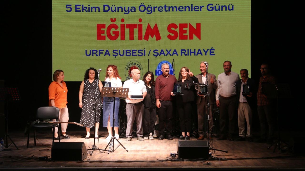 URFA – Eğitim ve Bilim Emekçileri Sendikası (Eğitim Sen) Urfa Şubesi, 5 Ekim Dünya Öğretmenler Günü’nü barış, demokrasi ve emek vurgusunun öne çıktığı anlamlı bir etkinlikle kutladı. Urfa City AVM’deki konferans salonunda gerçekleşen etkinliğe çok sayıda eğitim emekçisi, sendika üyesi, demokratik kitle örgütü temsilcisi ve yerel sanatçılar katıldı.