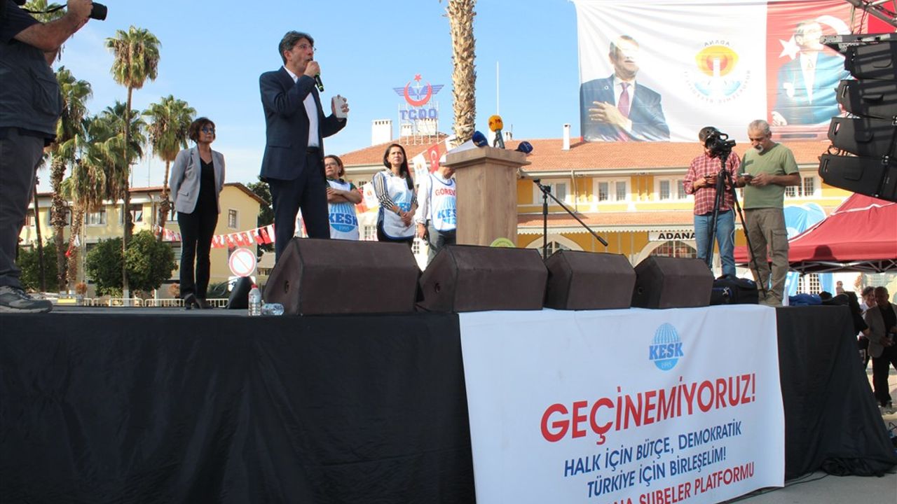 Adana’da KESK tarafından düzenlenen “Geçinemiyoruz” mitinginde DEM Parti Milletvekili Ali Bozan, emekçilerin ve emeklilerin yaşadığı geçim sıkıntılarını TBMM’nin gündemi ile karşılaştırarak eleştirdi.