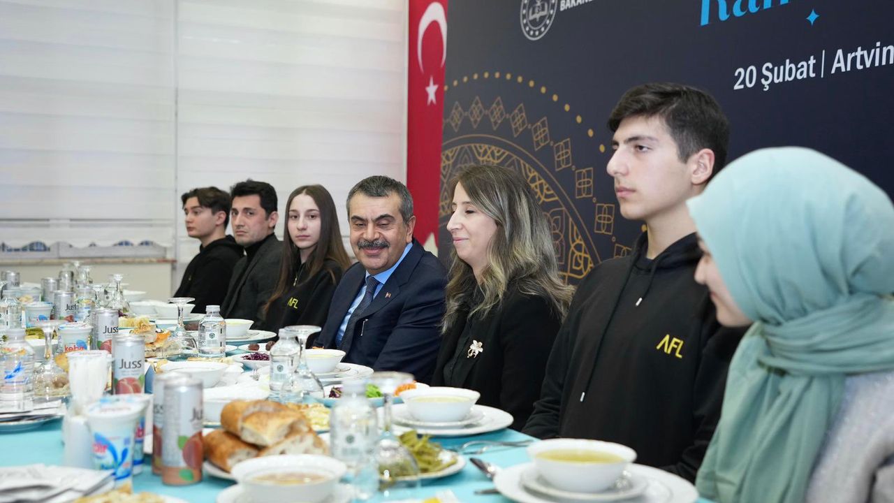 Milli Eğitim Bakanı Yusuf Tekin, Artvin’de düzenlenen “Maarifin Kalbinde Ramazan” temalı “İftarda Konuşalım” programında öğrenciler ve öğretmenlerle bir araya geldi. Devlet Su İşleri 26. Bölge Müdürlüğü’nde gerçekleştirilen programda iftar yapan Tekin, Türkiye’nin uluslararası sınavlardaki başarısına dikkat çekti.